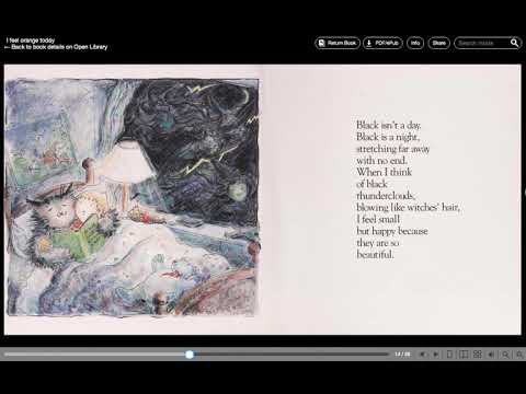 I Feel Orange Today, read by teacher Nora, explores children's emotions as they may emerge on any given day, joyous sometimes, even jubilant, occasionally sad and lonely. The boy who feels orange today equates moods with all the colors of the rainbow.