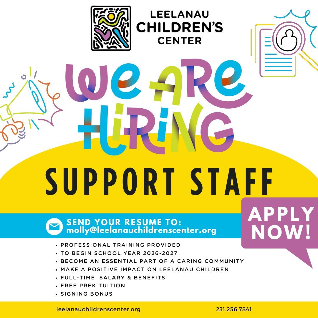 The Leelanau Children’s Center is open to receiving applications from persons interested in becoming a full-time Preschool Teacher at LCC. We look for early childhood educators with preschool teaching or childcare experience, with an understanding of research-based preschool curricula and knowledge of developmentally appropriate practices.LCC teachers can problem-solve positively and work collaboratively within a team. They are able to work with diverse families and engage parents as partners in their child’s learning and well-being.Experience Preferred
